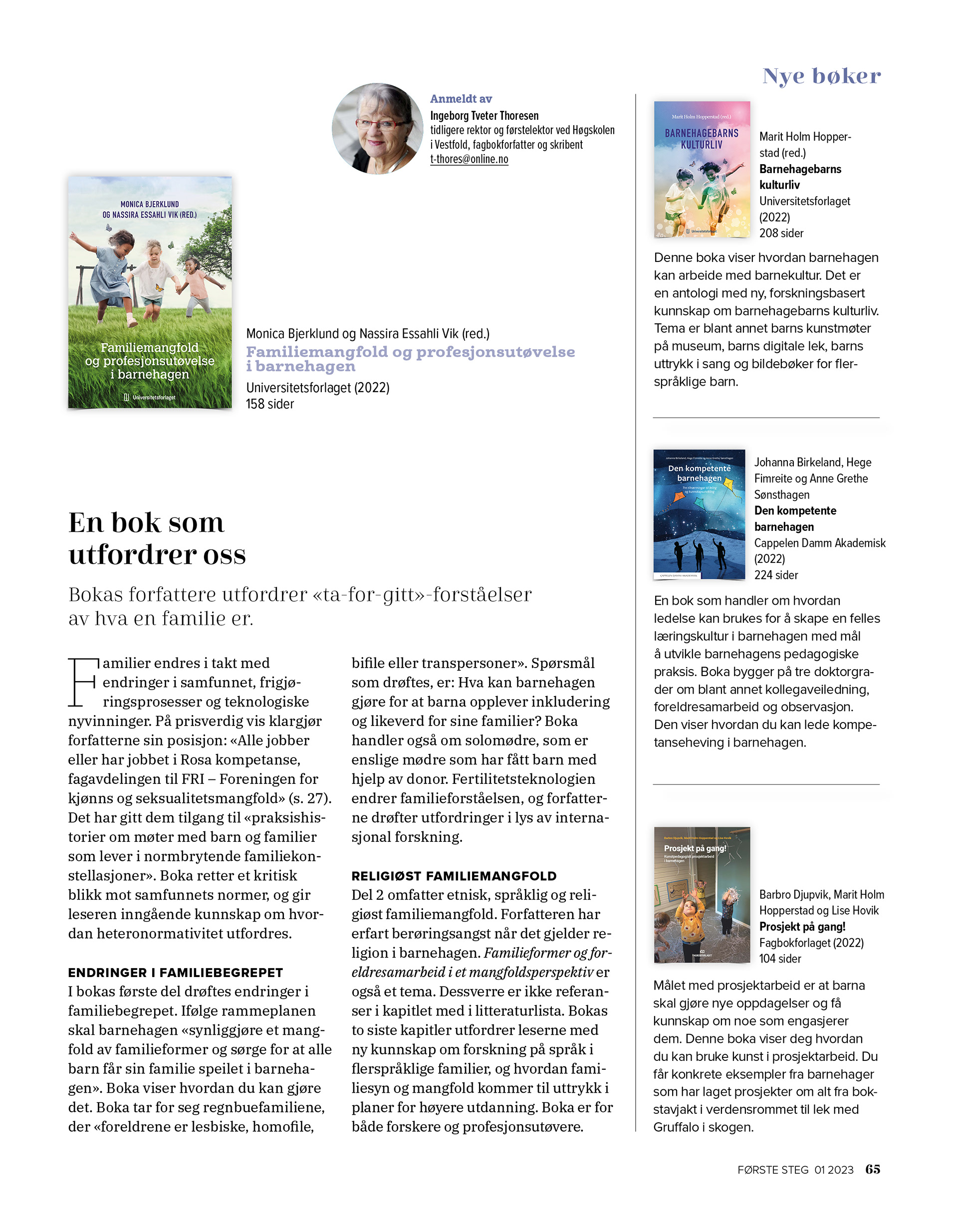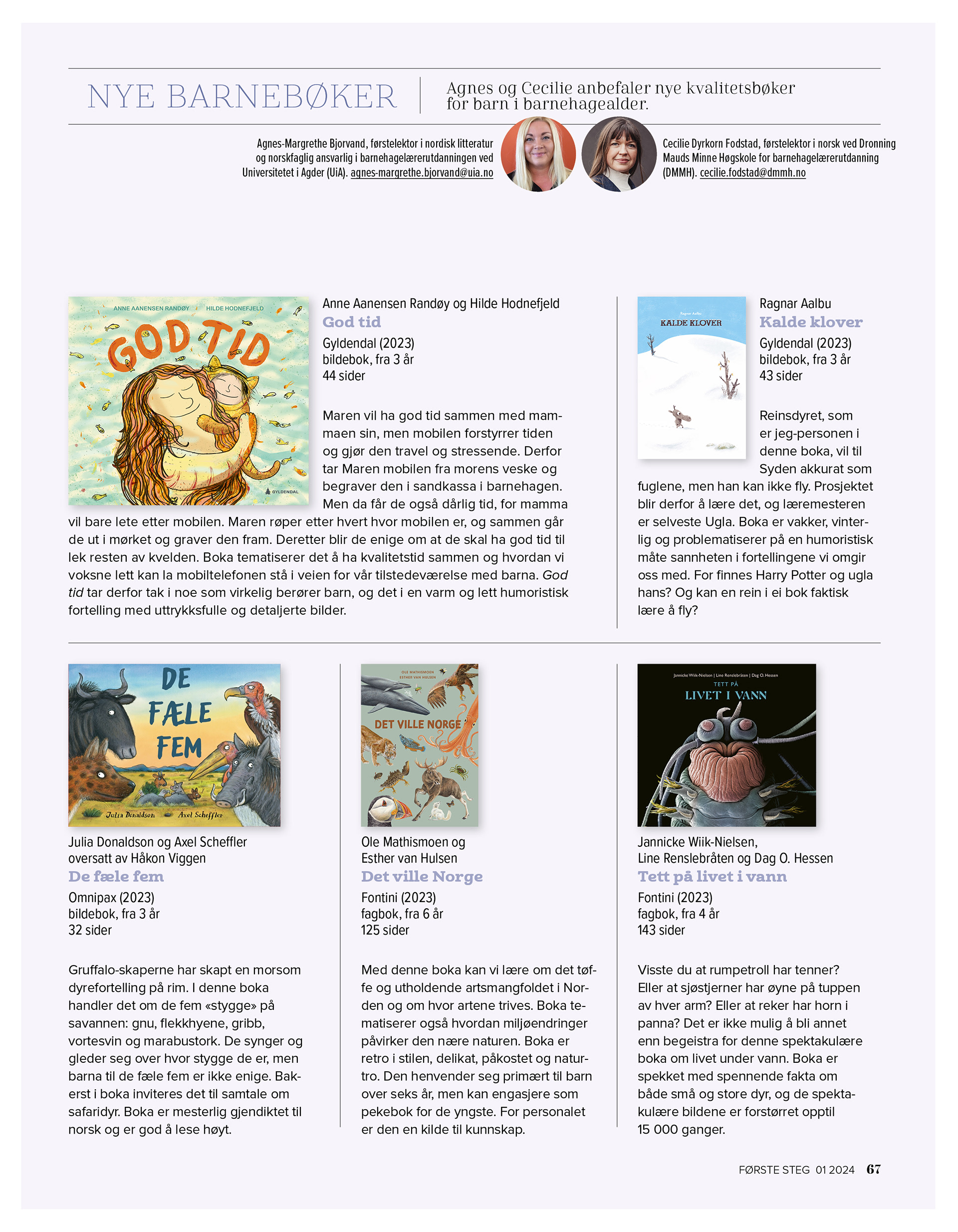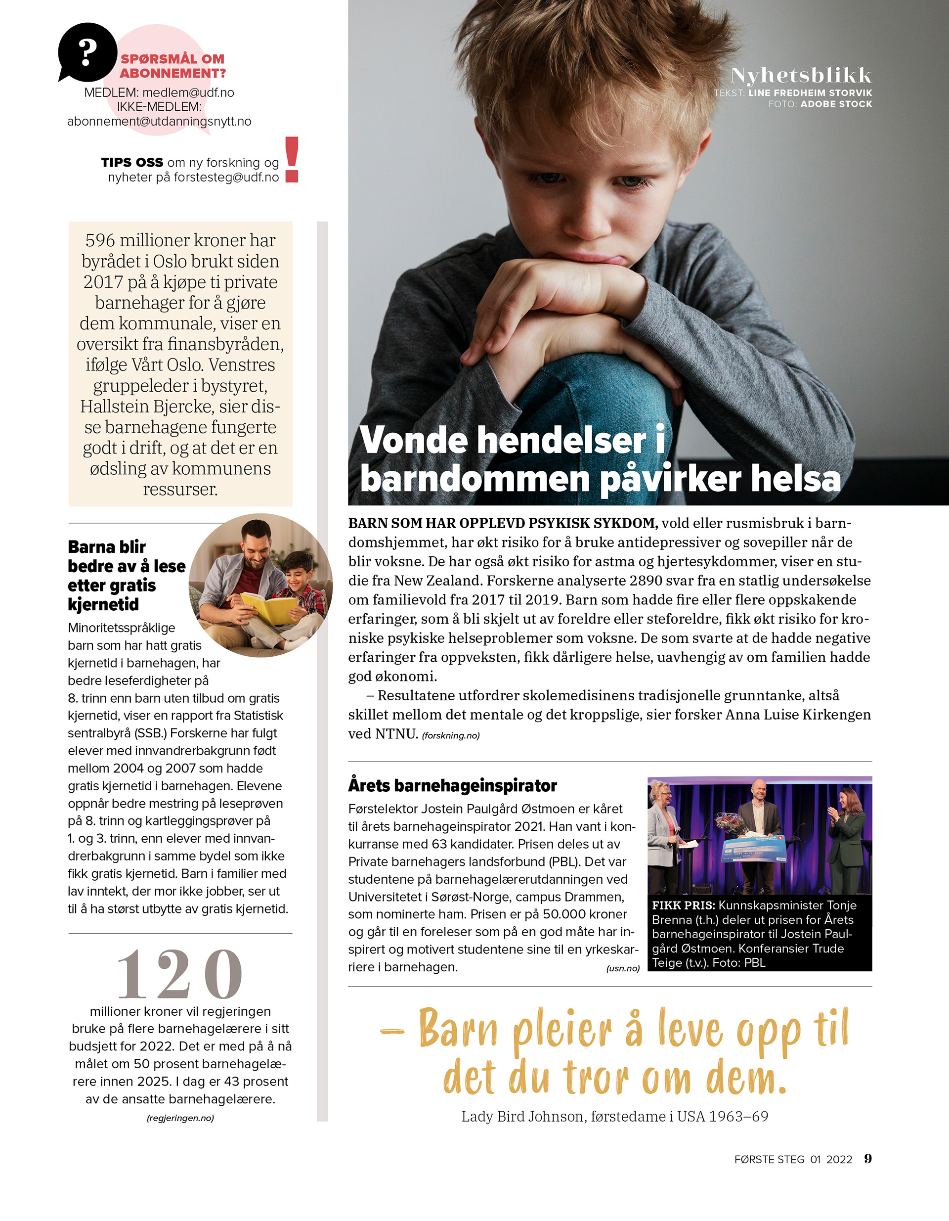 Et faglig-pedagogisk tidsskrift for barnehagelærere, styrere og studenter og andre med interesse for barnehage. Årets fagblad i 2023.